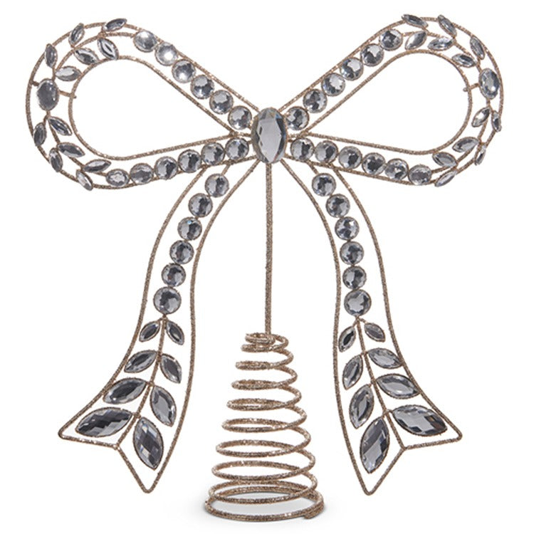 Add a touch of elegance to your Christmas tree with this stunning 10.5" Clear Jeweled Bow Tree Topper. Featuring a sparkling jeweled design, this beautiful topper catches the light, enhancing your holiday decor with festive brilliance. Crafted from high-quality materials, it is durable and built to last for many seasons. Perfect for finishing off any tree, this exquisite topper will make your holiday celebrations even more magical.