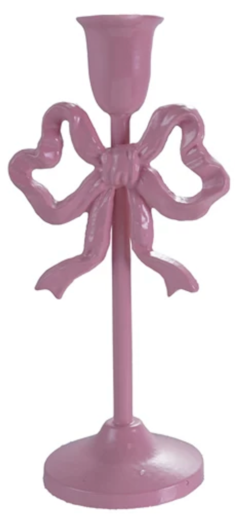 Add a touch of rustic elegance to your decor with this cast iron bow taper holder. Featuring a gracefully sculpted bow design and available in two classic colors, this sturdy piece is perfect for showcasing taper candles and bringing a vintage-inspired charm to your space.