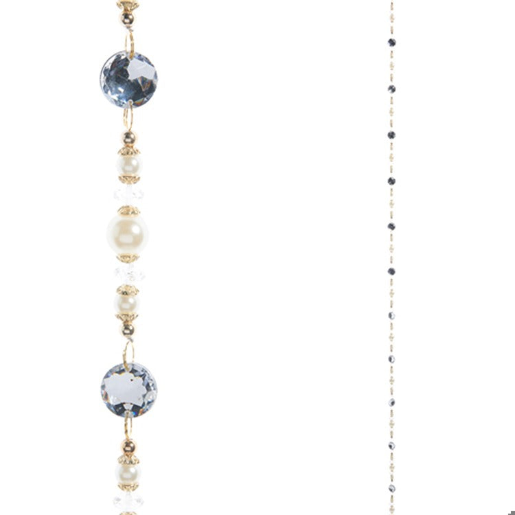 Elevate your home decor with this elegant 5.5' Pearl and Crystal Beaded Garland. Featuring delicate pearls and shimmering crystals, this garland adds a sophisticated sparkle to Christmas trees, mantels, centerpieces, and more. Perfect for the holidays or year-round use at weddings, parties, or special events, this timeless piece brings glamour to any setting.