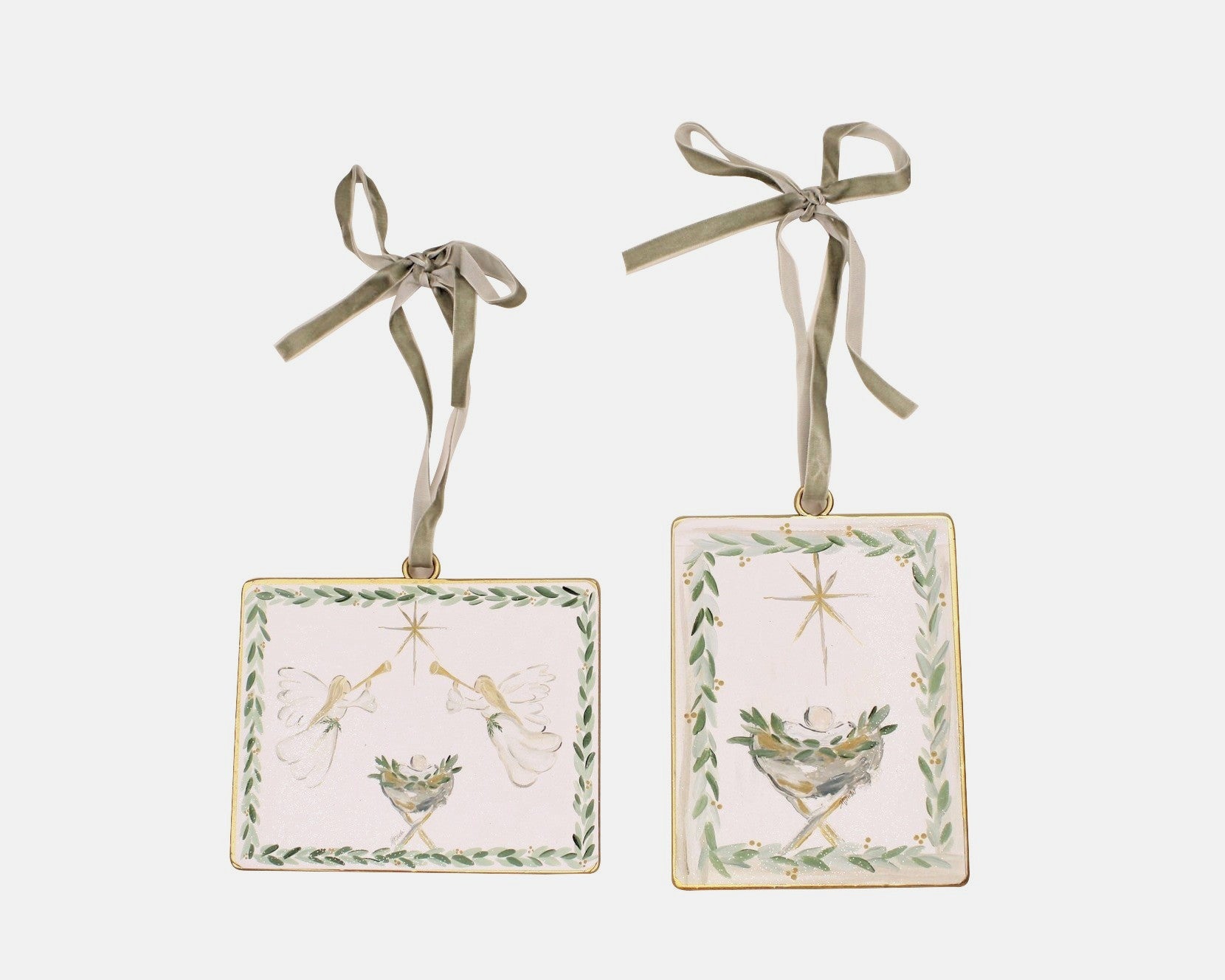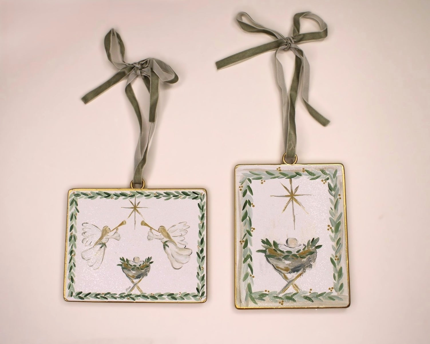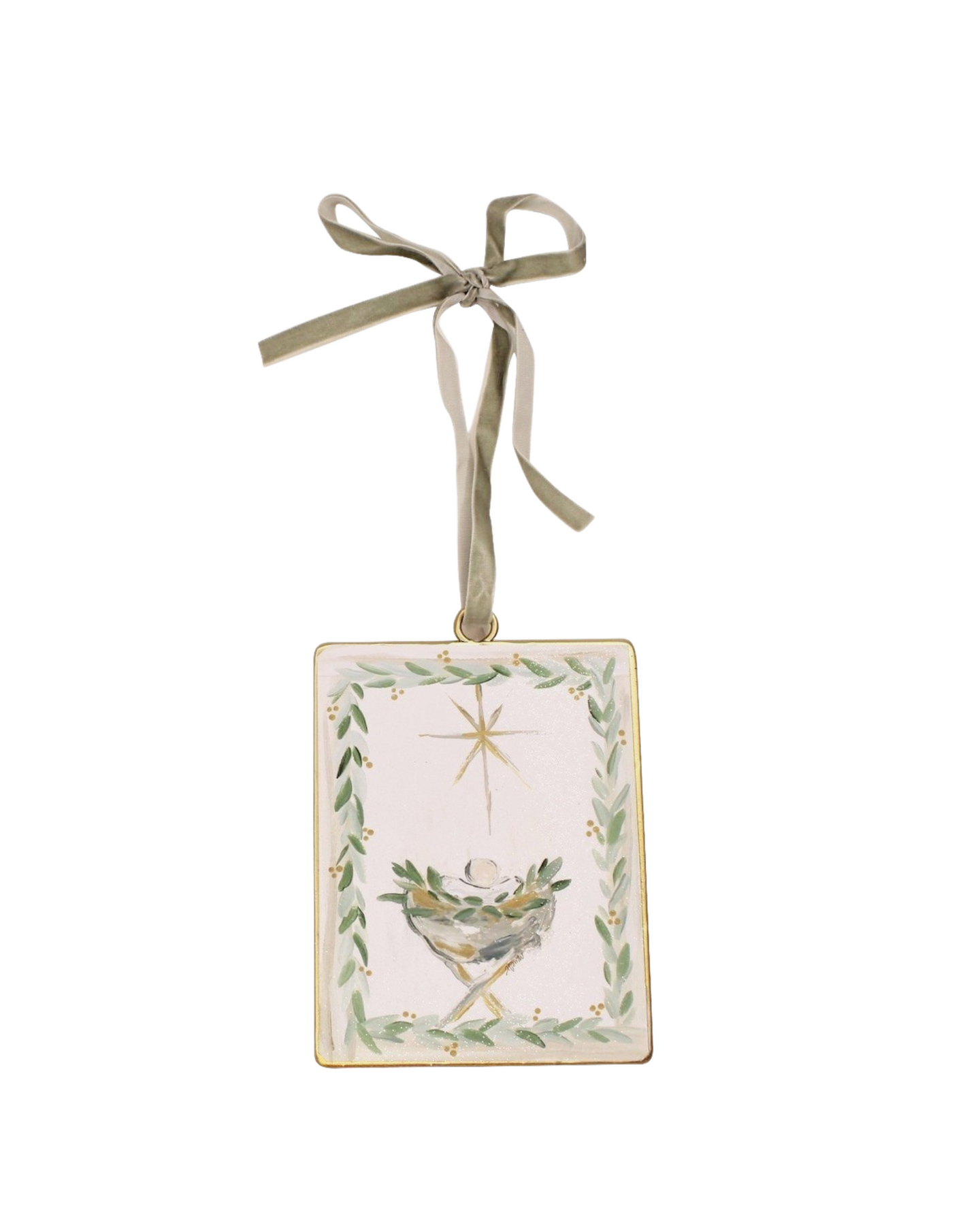 Bring a touch of rustic elegance to your holiday décor with the Manger w/Greenery Metal Ornament. Measuring 4" x 6" and available in two charming styles, this ornament features a detailed manger scene accented with festive greenery. Crafted from durable metal, it adds a sophisticated farmhouse feel to Christmas trees, wreaths, or holiday displays. Perfect for those who love faith-inspired décor with a modern, natural twist, this ornament is a meaningful way to celebrate the season.