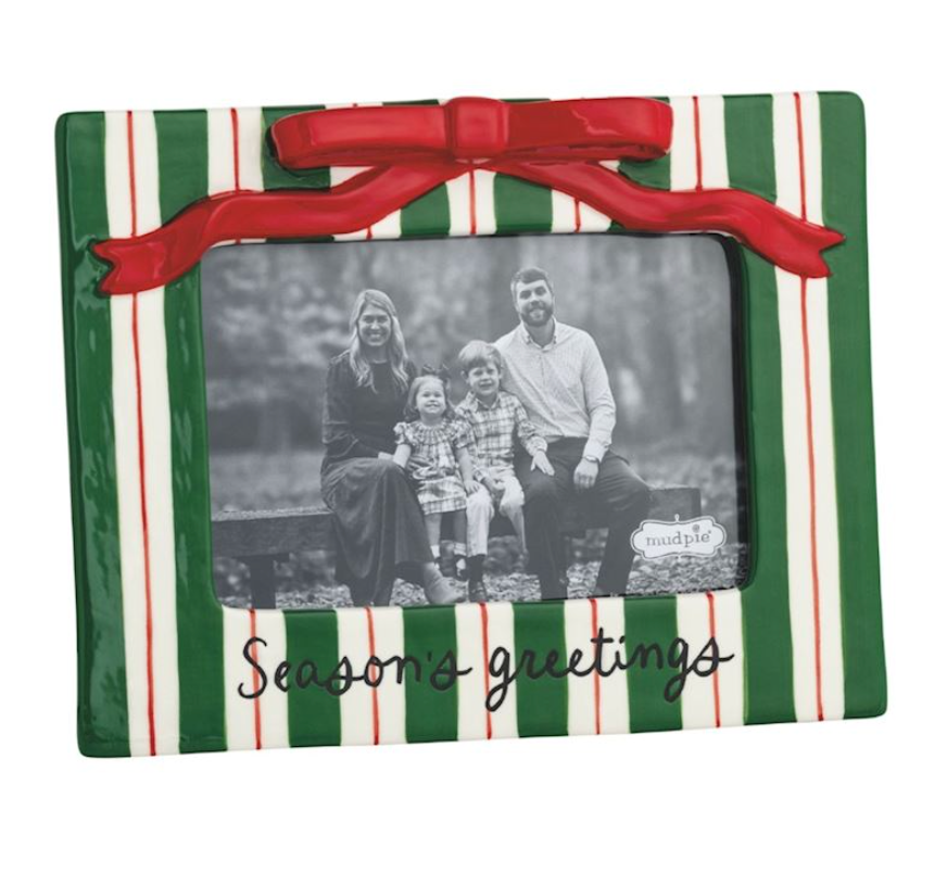 The Christmas Bow Stripe Photo Frame brings a festive flair to your holiday memories. Featuring classic stripes and a charming bow accent, this frame is perfect for displaying cherished seasonal photos and adding a joyful touch to your decor.