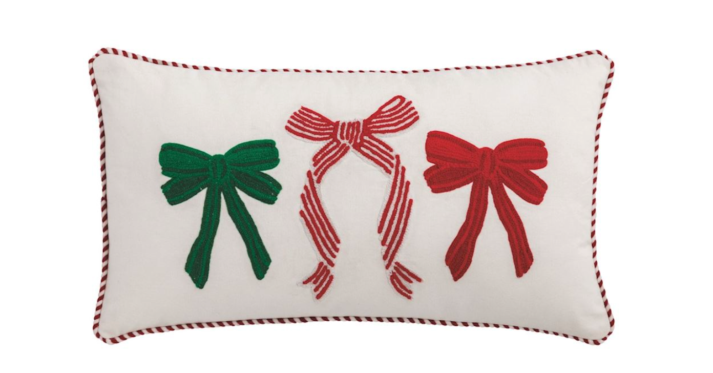 The Bows Whimsy Crewel Pillow adds a playful and artistic touch to your home decor. With its whimsical bow design and intricate crewel embroidery, this pillow brings a unique blend of charm and craftsmanship to any space, perfect for adding a pop of personality to your living room or bedroom.
