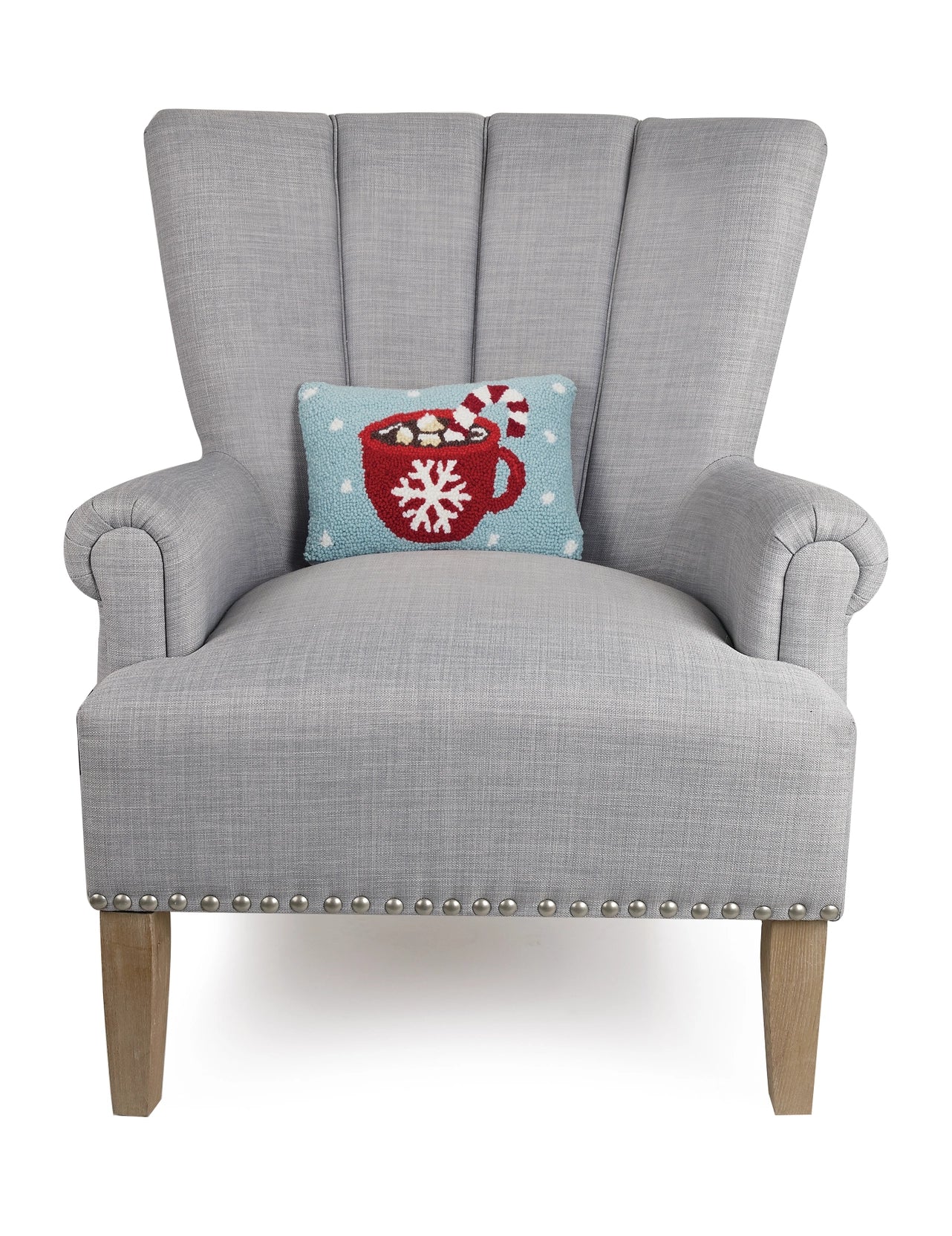 The Hot Cocoa Hooked Pillow features a cozy design of a cup of cocoa complete with marshmallows and a candy cane. Measuring 8" x 12", this pillow is crafted with 100% wool for the hooked design, providing a textured and warm feel. The back is made of soft velvet, adding a luxurious touch, while the poly fill ensures plush comfort. Perfect for adding a touch of festive warmth to your living space, this pillow is an inviting accent for your couch, chair, or bed.