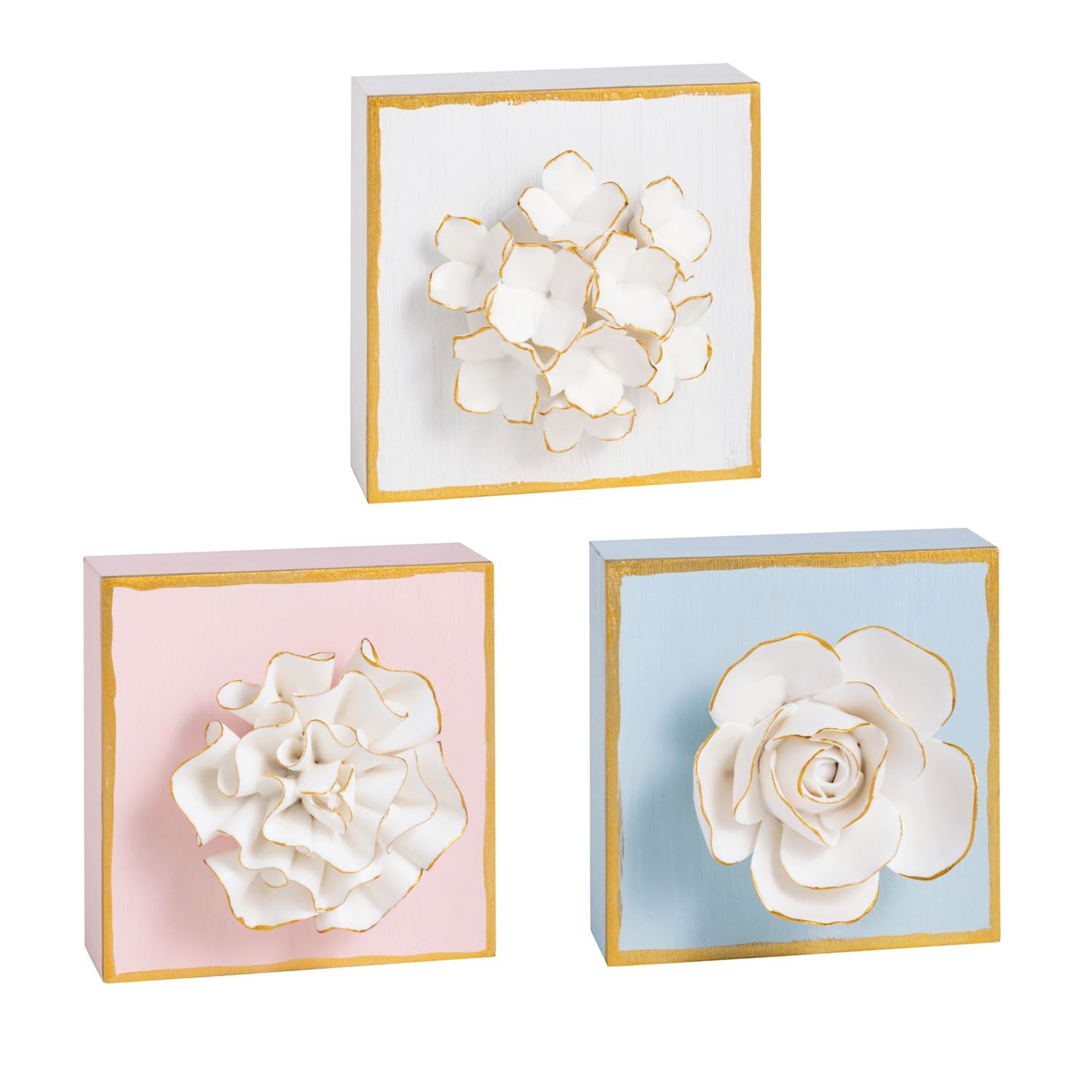 Perfect for shelves, mantels, desks, or gallery-style displays, these floral plaques complement cottage, farmhouse, and modern décor alike. Available in three color options—blue, pink, or white—each plaque is sold individually, making it easy to mix, match, or display on its own.
