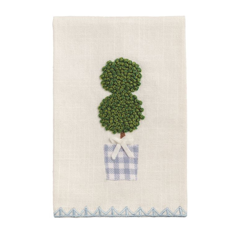Add timeless garden charm to your kitchen with the Topiary Tea Towel. This beautifully crafted woven, yarn-dyed striped towel features a classic design elevated by an embroidered garden icon with dimensional embellishments for added texture and visual interest.